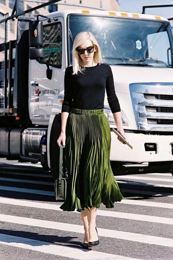 要说最适合日常扮仙女的当属墨绿色百褶裙,既寡淡又百搭,几乎不挑人。▼