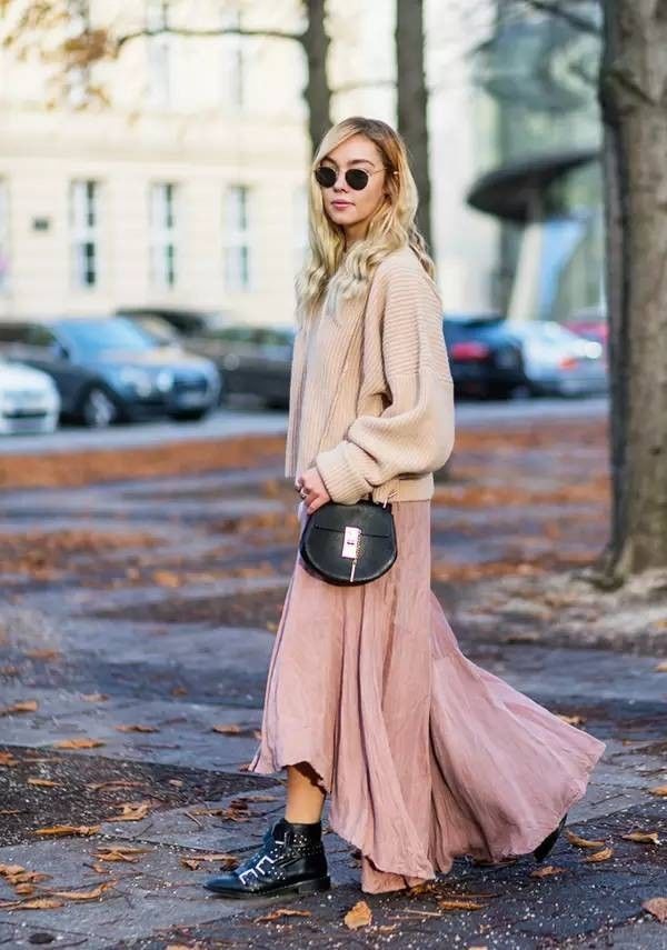 宽松的毛衣与廓形感的伞裙如何穿出纤细感的秘籍就在于腰部,掐出小细腰才能让你玲珑有致。▼