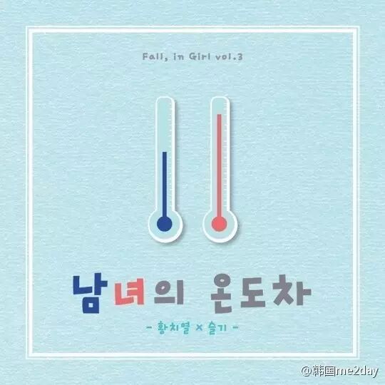 歌手黄致列与Red Velvet成员姜涩琪合作推出的新曲《男女的温度差》将于韩国时间21日0点通过各大音源网站公开。这是一首讲述了交往已久的恋人之间所存在的立场差异的歌曲。同时这也是黄致列与女团合作的Fall,in gril系列企划推出的最后一首歌曲。