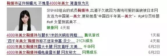新闻通稿上称:“鞠婧祎比日本偶像团体有颜团之称的乃木坂46中首席美女白石麻衣还要漂亮!”