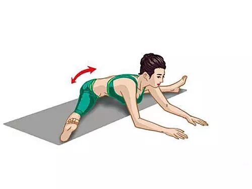 骨盆稳定,臀部贴地,膝关节膝窝贴地。左右交替,手向对侧脚的方向延伸,完成30次。当伸展达到最大限度后,停下来等待8次呼吸。