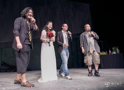 采访被安排在爬梯结束之后,曾剑穿梭在后台,忙着与离场的亲友们打招呼。梅婷的视线不时地漂移到曾剑的身上。当被问及曾剑有什么缺点时,梅婷想都没想地摇着头说:“目前没有。他特别温和,特别温柔,特别好。就像我在话剧里的那句台词,爱上一个艺术家就是这种感觉,他总是会离开你,因为他心里总有更美的东西。在我排练的期间,他被别人邀请去拍摄一部纪录片,环境特别得糟糕,特别危险,坐飞机转了三天都没有到达目的地。回来之后,他说自己在拍片的时候感觉像战地记者,很兴奋,鼻子上蜕了好层皮。我为他高兴,也为他担心。我是他的妻子,是孩子的母亲,同时我也是他的精神伴侣,我不能因为自己的安全感,去扼杀他的梦想。不过回来以后我跟他说,你要是出了事,我一定后悔死。还好,还好。”