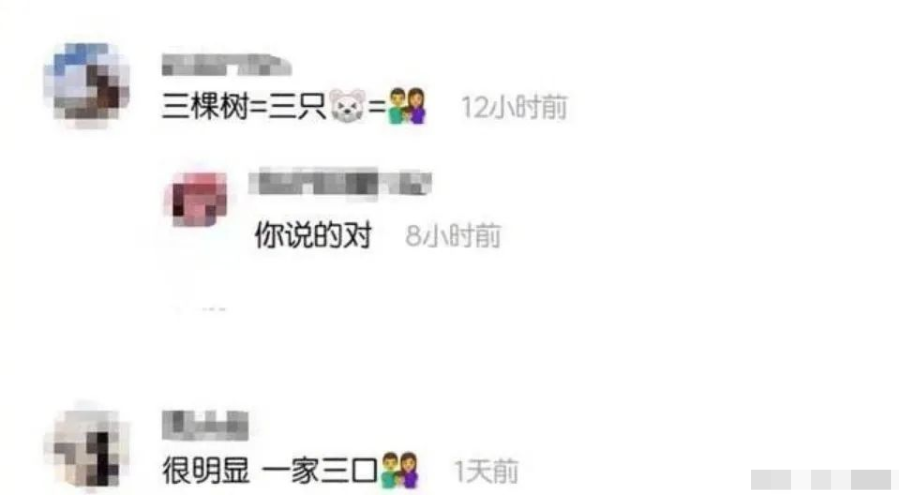 两颗大松树,一颗小松树,有点一家三口内意思了,而且“三棵树”又有三只老鼠的谐音,向佐和郭碧婷都是属鼠的,意思是快添一个鼠宝宝了?