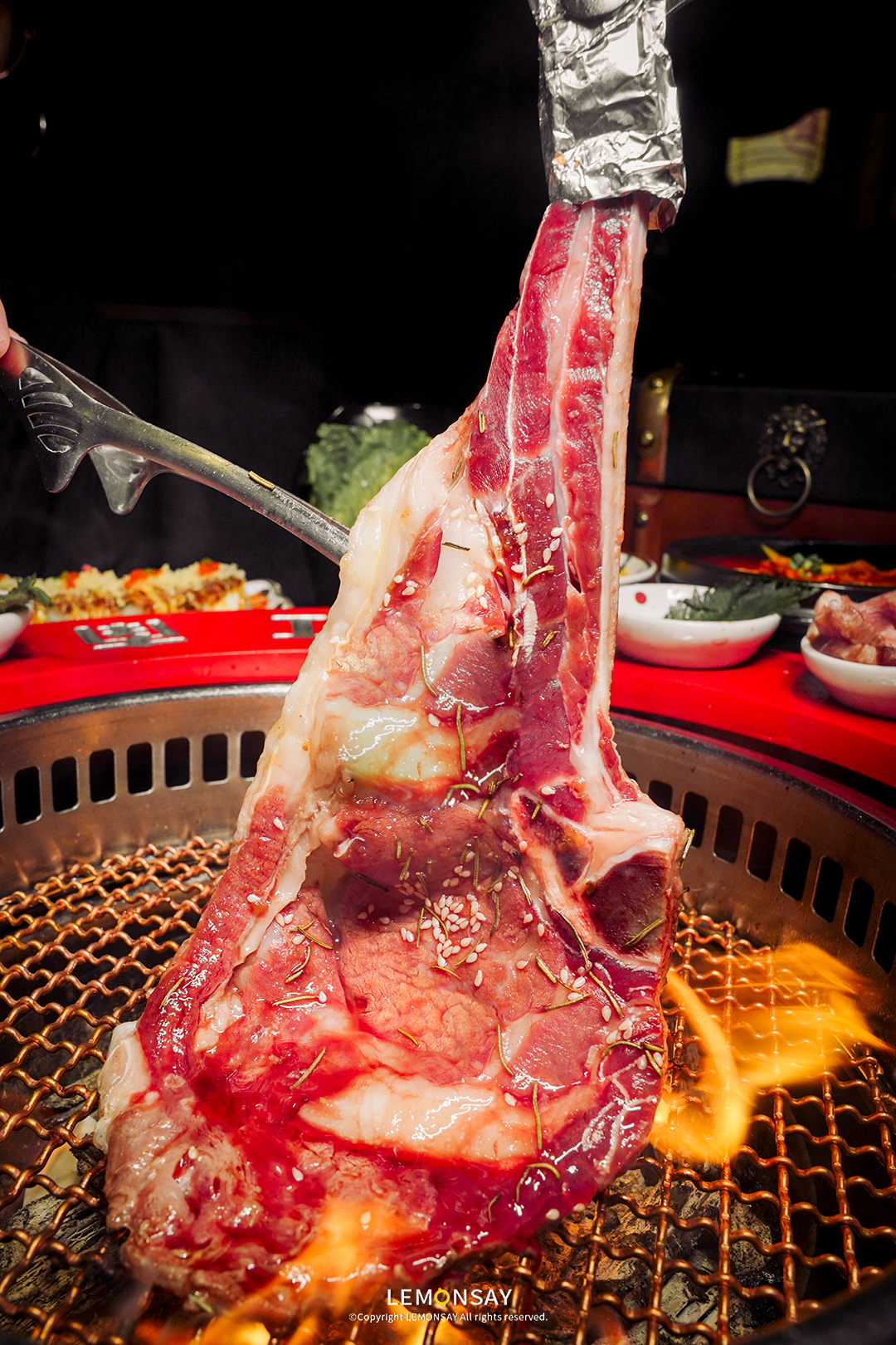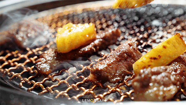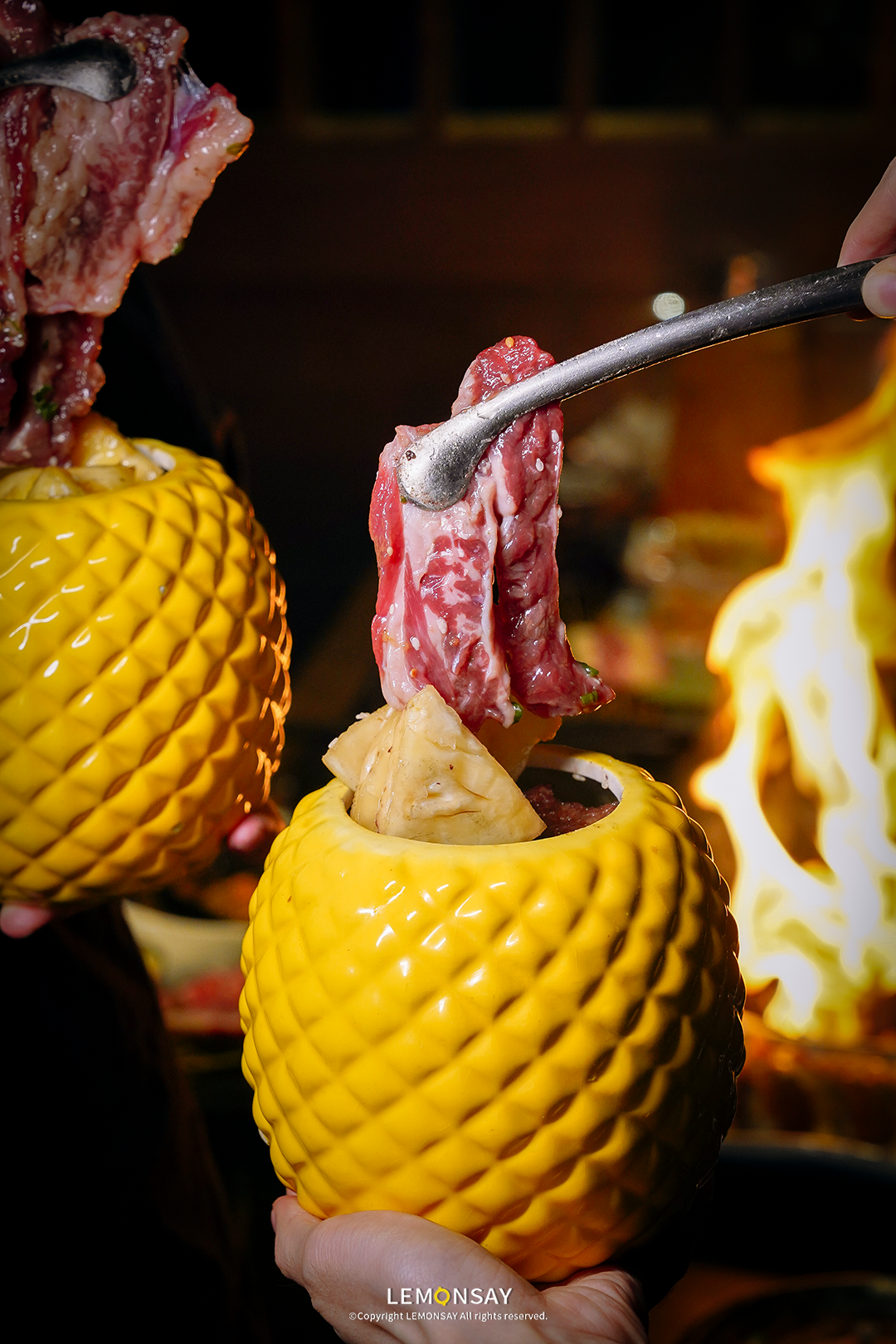 这款水果烤肉回头客最多,折后才39元/份。牛肋条提前腌制入味,上桌后与菠萝一起烤,不用蘸取任何调料,淡淡果香把肉香衬托得淋漓尽致,太过瘾了!