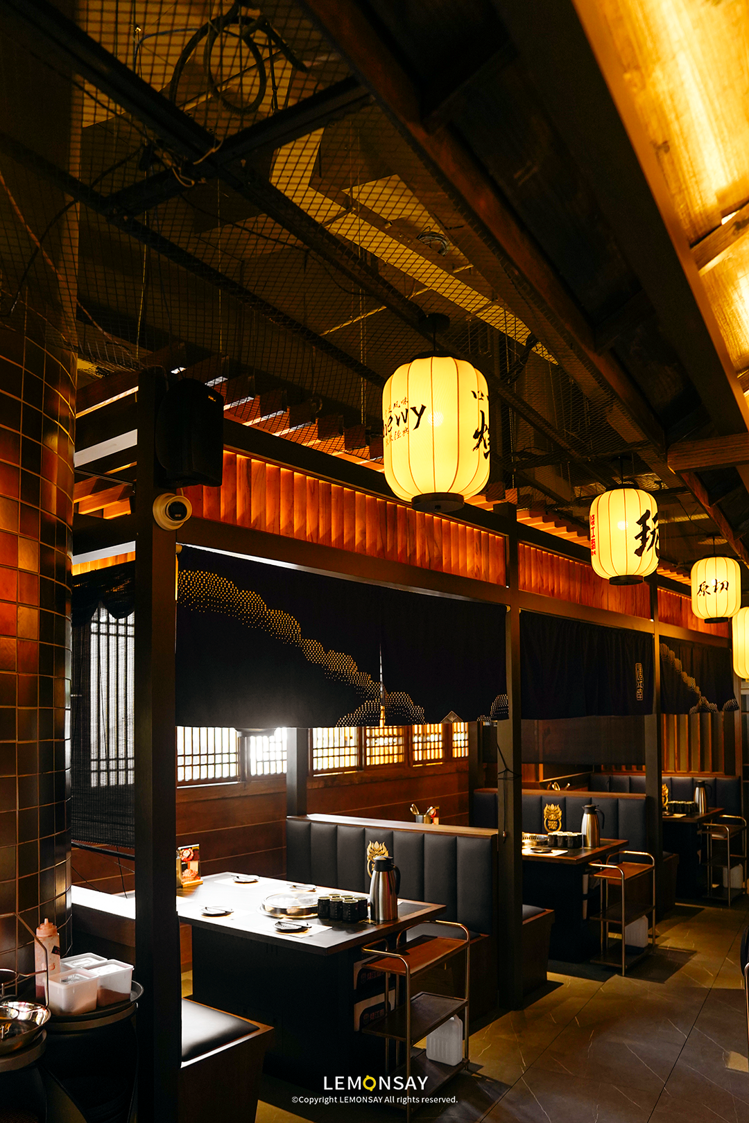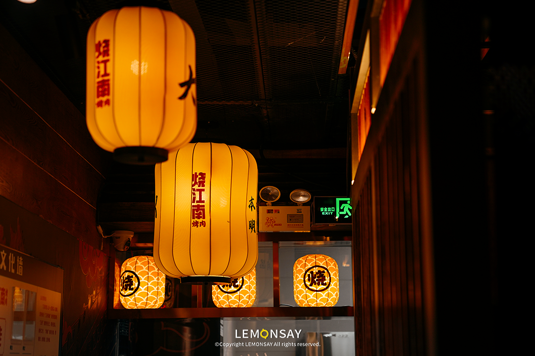 烧江南深圳首店就开在摩天轮脚下,店内随处尽显浓郁古风味道,木桌木椅木隔栏、暖黄纸灯笼…令人感觉置身古代。
