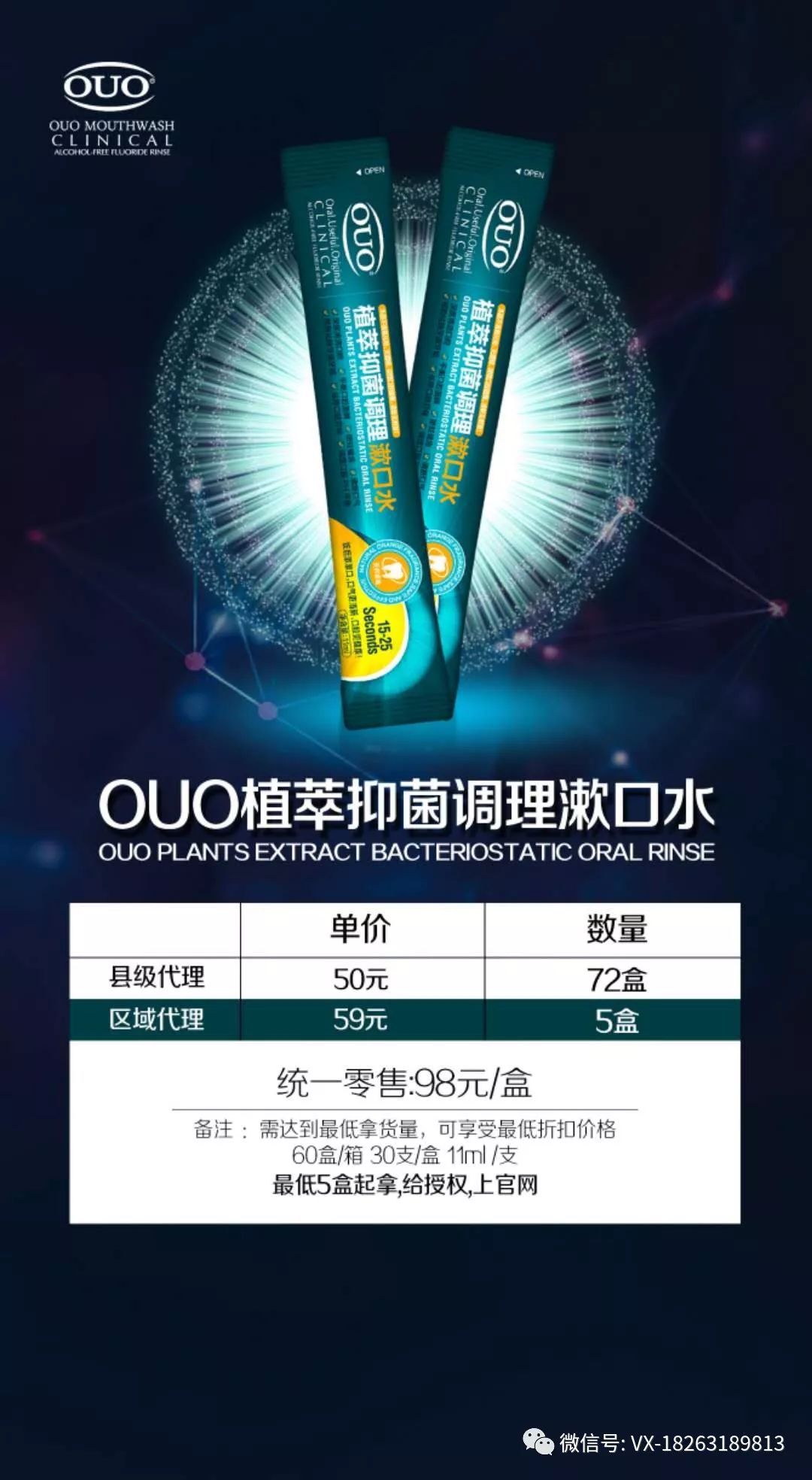 5、新品上市5盒就可以做代理,5盒也就是295元就可以代理梵大集团OUO植萃抑菌漱口水