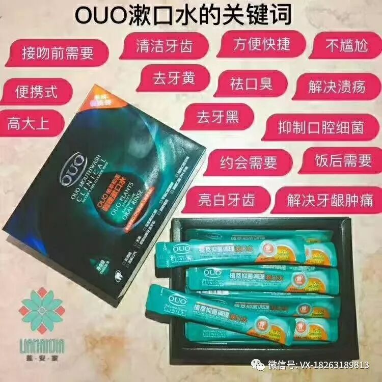 7、OUO植萃已经漱口水将会占领所有饭店,宾馆,做到全球漱口水品类第一,独立11ml包装方便携带,产品保质期2年(一盒30袋)1袋11ml香橙味