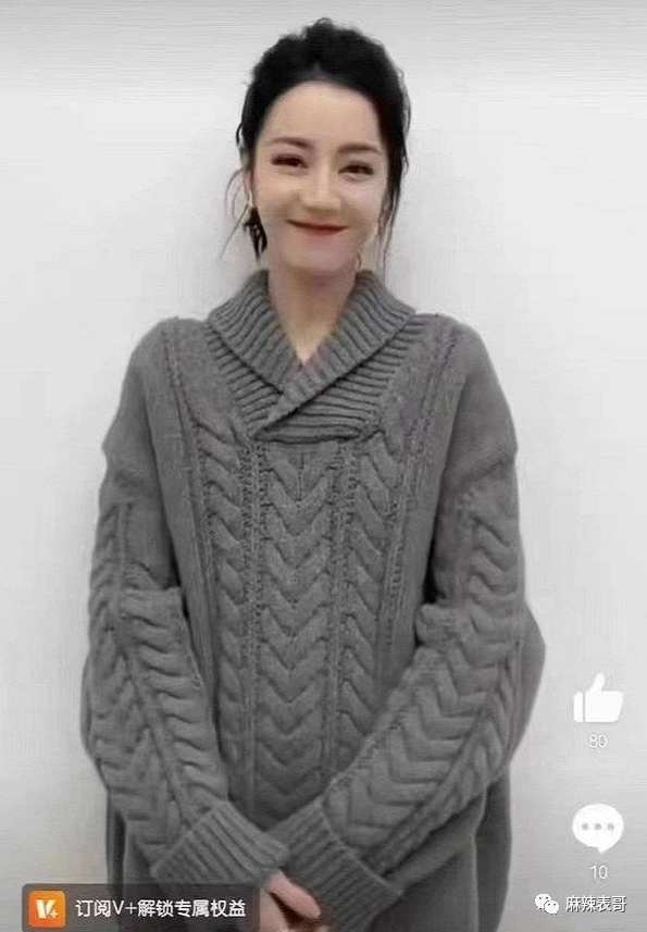 一向走艳压路线的热巴,竟然一反常态,穿着宽松款毛衣。