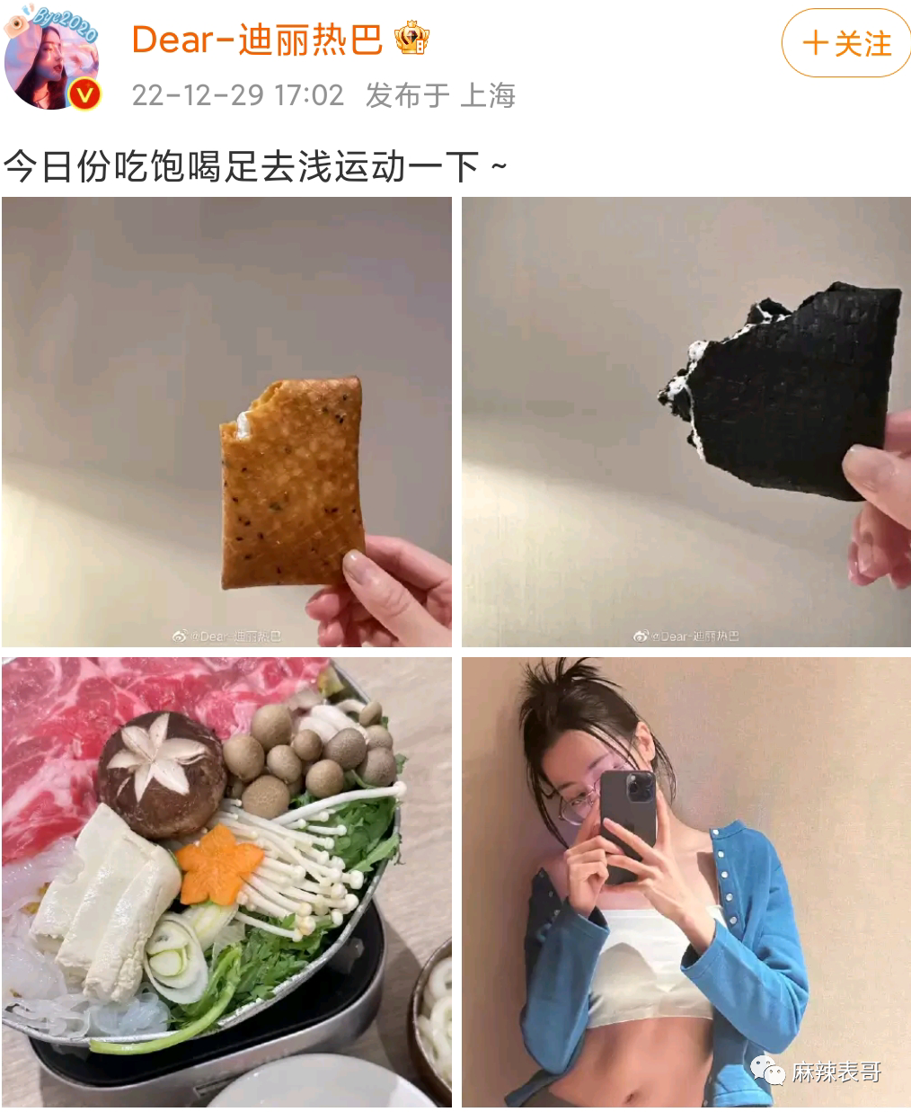 包括,大家如果还记得的话,去年12月底,热巴晒过小蛮腰。