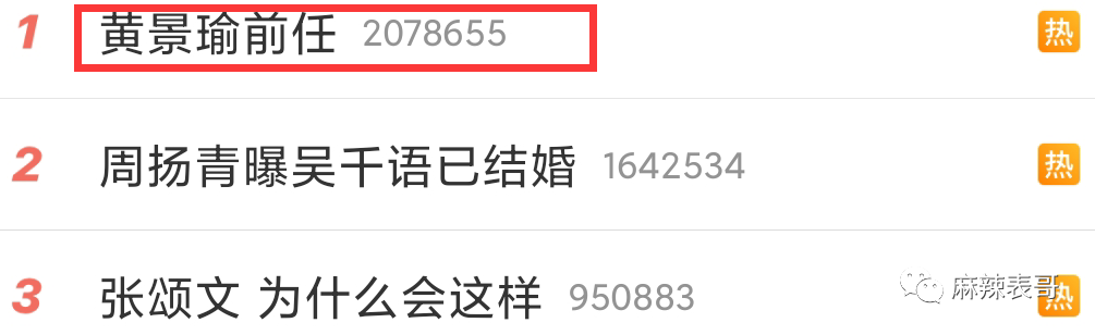 除“热带鱼”可以讨论之外,今天不知道为什么,大家又对黄景瑜的前任产生了兴趣。