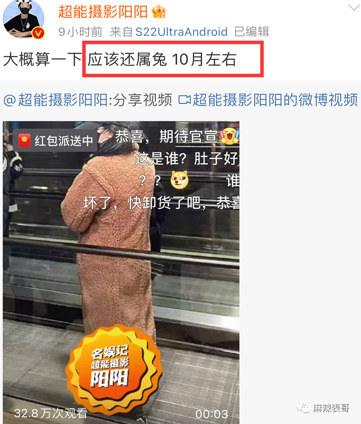 狗仔阳阳分享了一个视频,热巴穿着有点臃肿,狗仔说可能是10月左右,属兔。