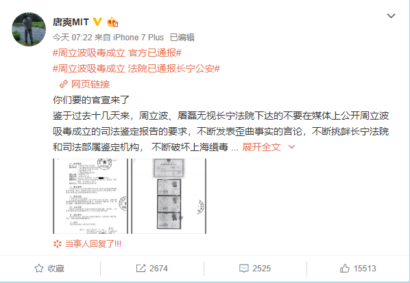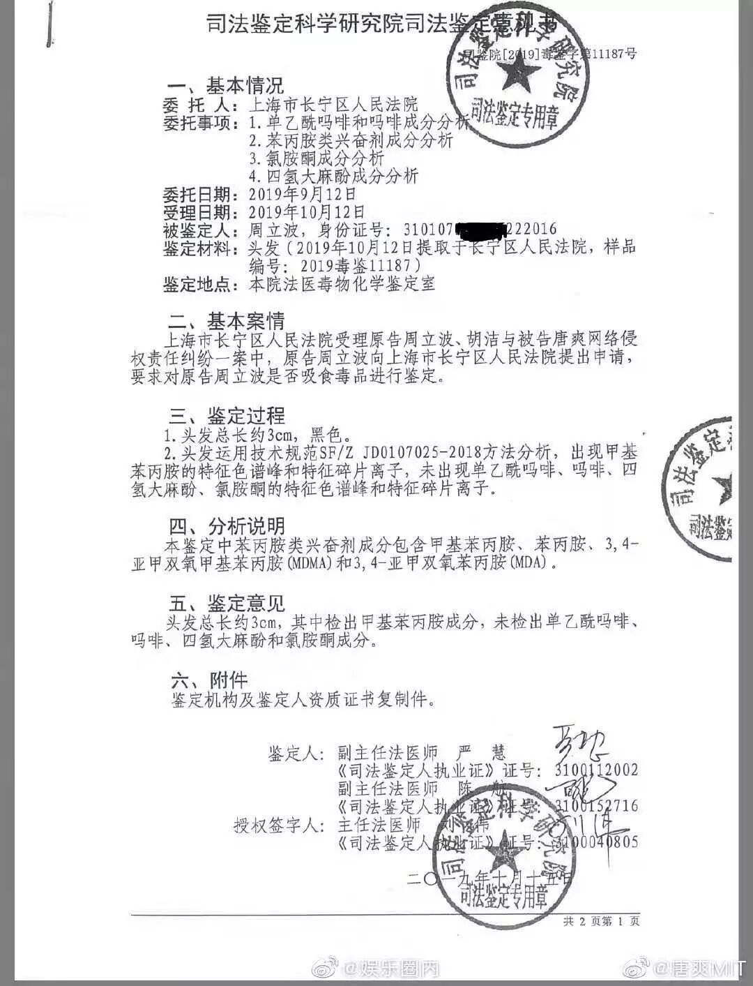 唐爽还特地附上了加盖公章的毒品鉴定报告: