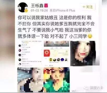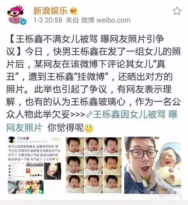 wtf?自己宠上天的宝贝,你骂丑?于是王栎鑫果断把这网友挂了出来。