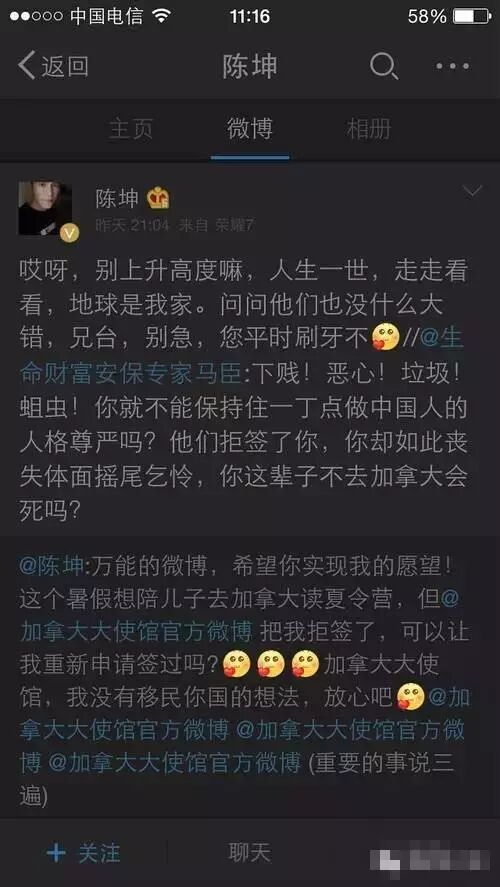 看下面这条回复,直接爆粗口啊,是不是与章的形象完全不符?