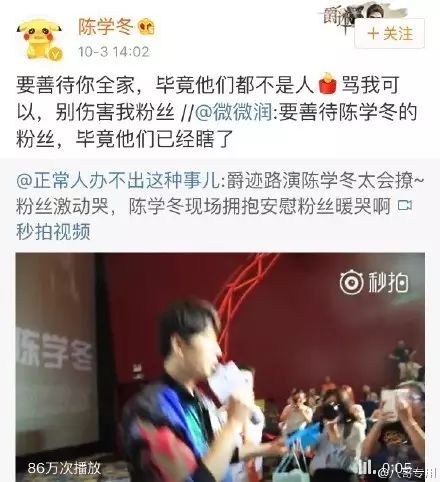 一个网友吐槽,要善待陈学冬粉丝,毕竟他们都瞎了。