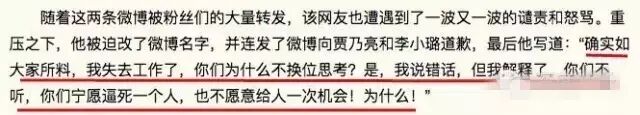 最终该网友公开道歉,并称自己失去了工作,这才作罢。