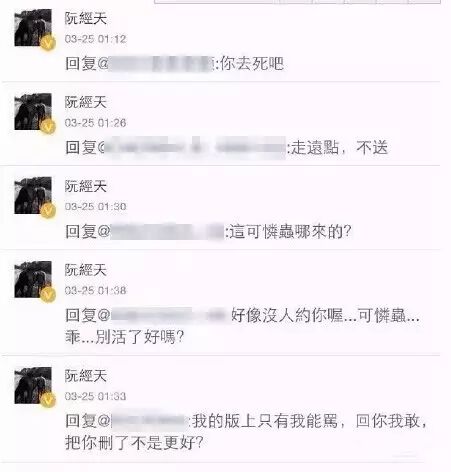 之后可能是键盘侠们太过分了,阮经天在微博上开始点名多位网友,直接开骂↓