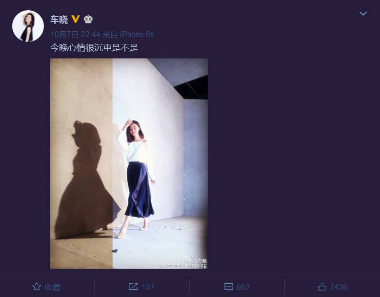 昨晚车晓就发微博称,今晚心情很沉重~