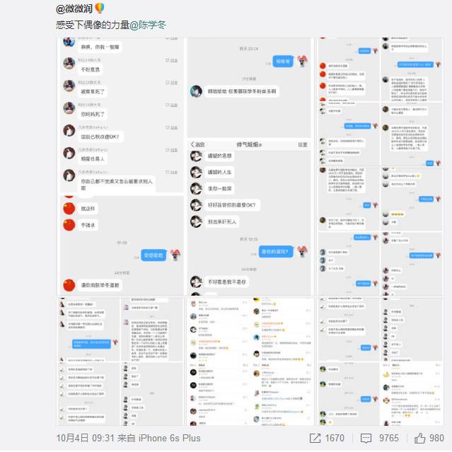 不过,这位网友真是撕X界的战斗机啊,直接把这些网友们的骂声都贴出来了,还@了陈学冬。