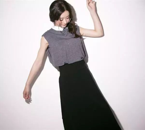 高腰的裙子非常显瘦,黑色更加优雅,小白领很清新