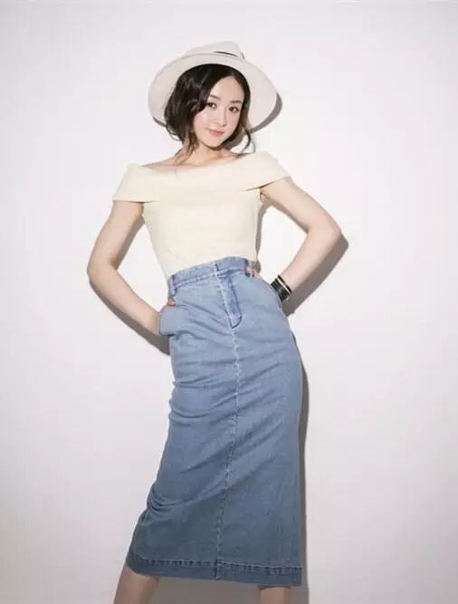 又是帽子戏法,牛仔长裙拉长了腰线,显得整个人又高又瘦