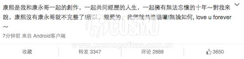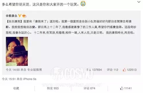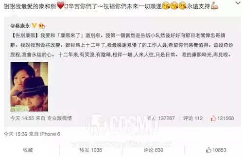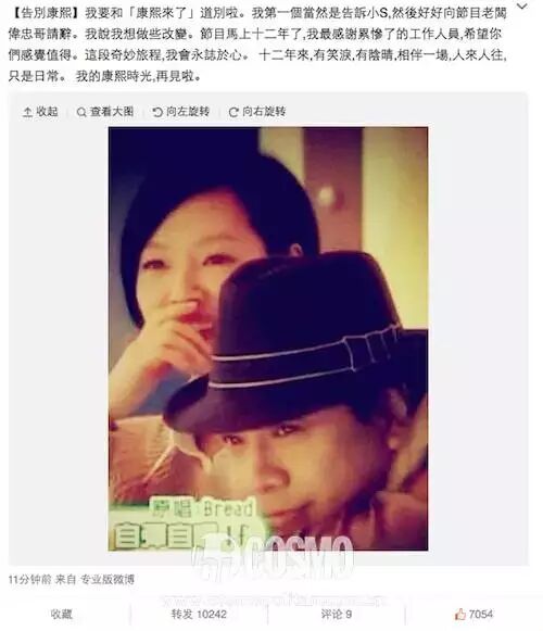 而一众明星也在微博上表达了对于康熙收掉的不舍。