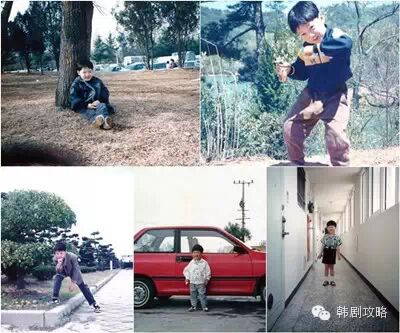 照片中,小时候的他留着一字头,总是对着镜头微笑,而且摆出帅气搞笑的各种姿势,看得出从小就有演员的架势。