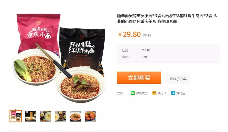 不过这次孟非即使做开方便面生意也并没有打算走“亲民”路线,这款方便面的发售价就是每包7元,相比我们平常吃的两三元的方便面确实不算低,即使在网上趁着活动价格也需要5包29元,也就是每包6元的价格。