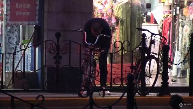 傍晚,神秘男子骑车出门。