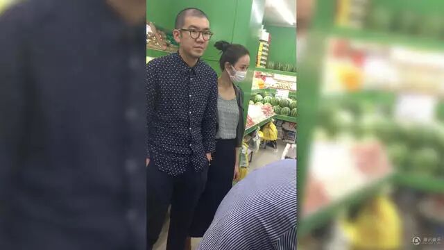 二人在店中宛如老夫老妻一般挑选水果,张钧甯还十分甜蜜地在身后抱住了这位神秘男。