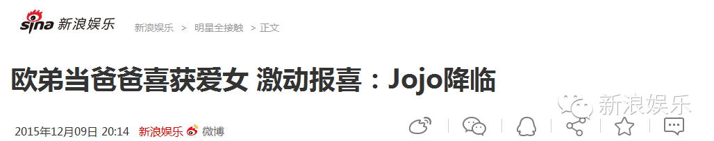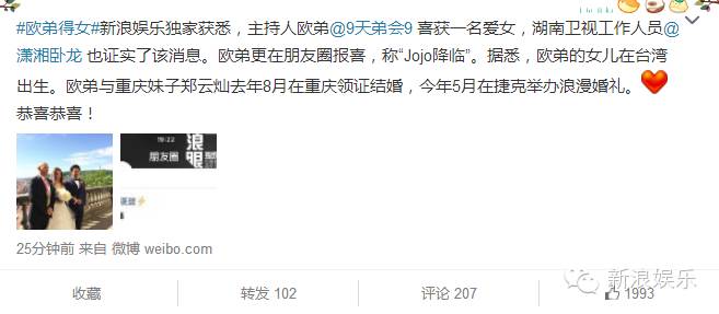 呸!是欧弟的老婆生了!我浪独家获悉此事,欧弟喜获一名爱女。