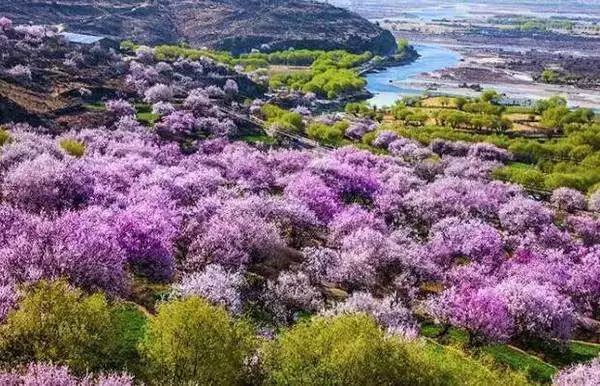 雪山、草甸、河水和密集的桃花,密密匝匝的桃林间可以闻花香,听花语,拍花景,晒花照。