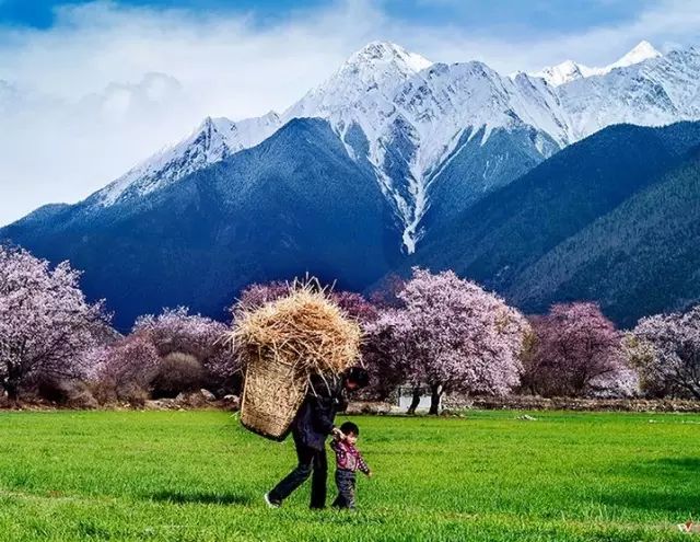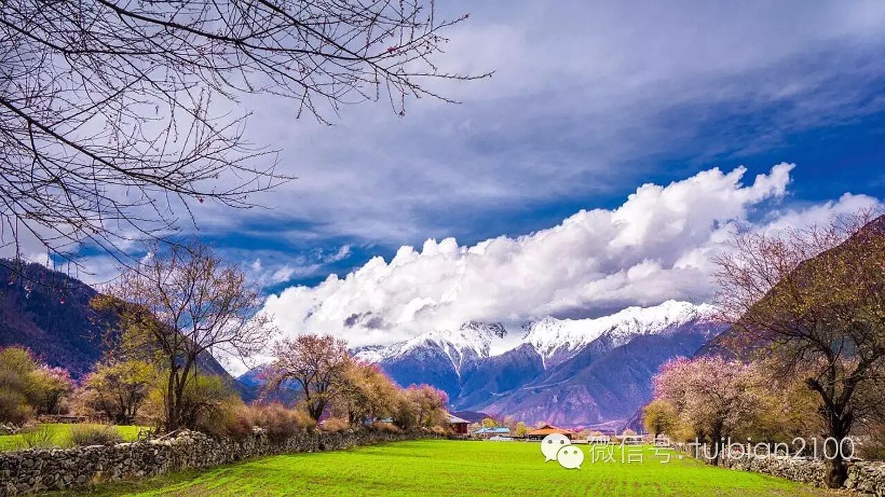 春天的林芝芳菲灿烂,圣域的雪山蓝天辉映与胜似江南的原生态田园风光,宛如世外桃源。