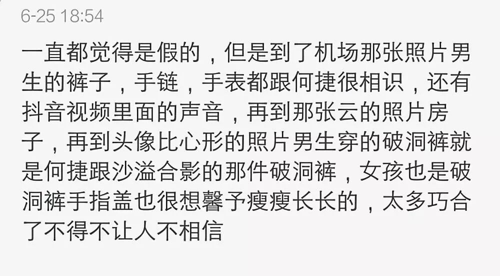 其中有一条评论是这样的,机场照、抖音视频、衣着……巧合太多了让人不得不相信↓
