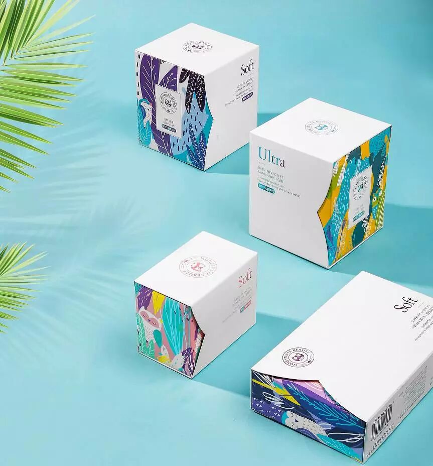 本以为这次她又给我什么国外的小众护理品,没想到打开看到的居然是一箱卫生巾。喏,就是这个了,美吧,从包装真的一点也看不出是卫生巾好吗。