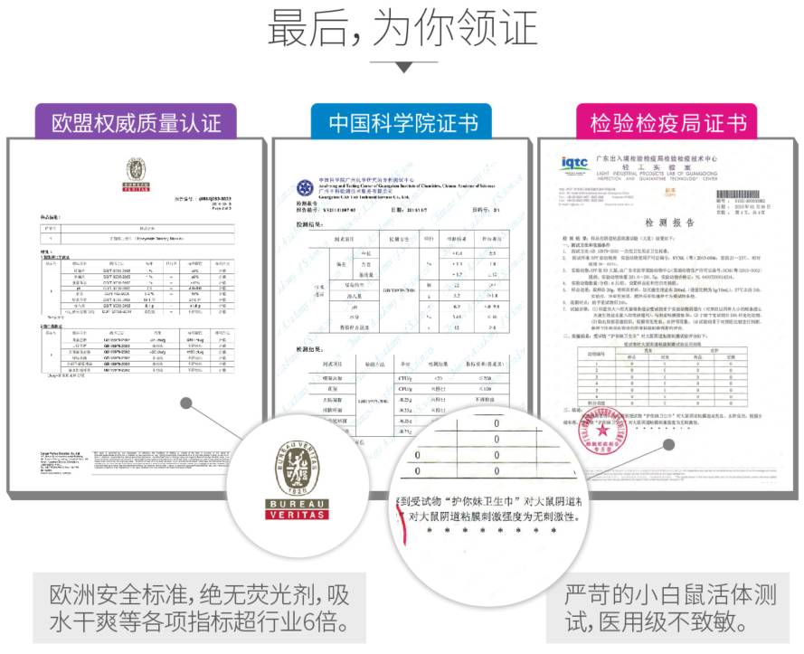 除了美国进口棉花认证,还有美国医疗FDA认证,还包括严苛的欧洲必维质检、小白鼠无敏检测,无荧光认证。