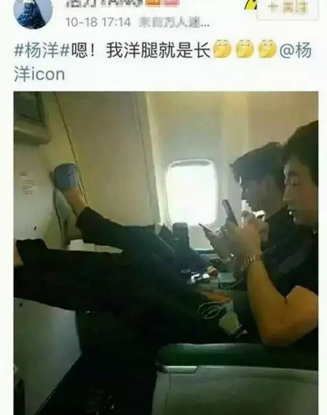 起因是有网友发了一条微博夸赞:“我洋腿就是长!配图是一张杨洋把脚蹬在墙上的照片”——