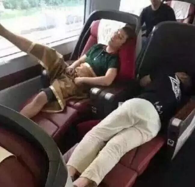 他在上海乘坐高铁,把鞋子脱掉把脚搭在窗前的那张照片——