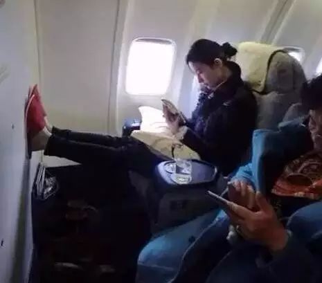 座位或墙根本不影响,重点是脚没放对地方,会把环境弄脏。所以希望粉丝不要再说什么“这个动作很正常”、“头等舱是可以这么做的”,往大了说这可是典型的双标!