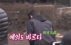 他有礼貌。看见粉丝会主动鞠躬打招呼,录制完节目也会特地开窗和给在寒冷中等待的粉丝们不断鞠躬表示感谢。任何时候总是第一时间鞠躬问好!