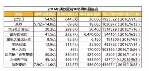 2016年播放量前十名的网络剧讨论热度排行看得出来,不仅播放量高,相关剧情的话题也是热度不断,这得益于网剧行业的大势所趋,同样也少不了这些视频网站本身擅用网络营销手段等因素。
