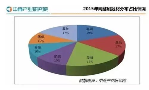 根据中商产业研究院发布的数据显示,2015年是网络剧发展的元年,题材多元化趋势更加明显。都市白领工作压力大,平时看喜剧类节目放松心情,释放压力是不错的选择;其次是爱情和悬疑题材受大众喜爱。