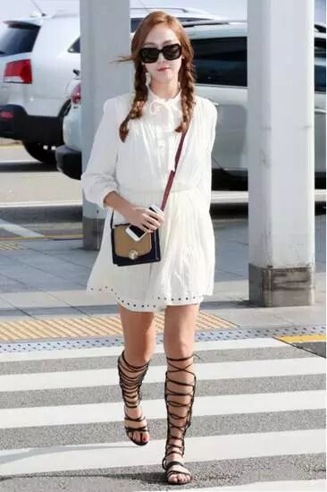 虽说这密麻的罗马靴在男子眼中并不受欢迎,但确实是拉风的一把好手,配上素雅的小白裙娇俏迷人,加上 欧美大妞式两条麻花辫也能秀出可爱风情。