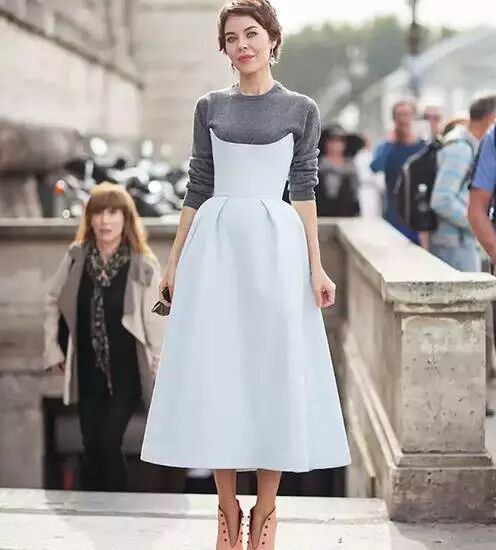 如果你想拯救沉睡了一冬的抹胸or无袖连衣裙也可以试着在里面加一件高级灰打底衫,满满的法式风情。