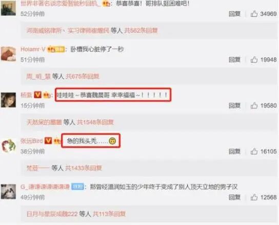 大家知道这个消息之后,也纷纷送上祝福:“恭喜恭喜!哥排队挺困难吧!”“新婚快乐!”“颤抖的手,激动的心,要幸福要快乐!”“我心脏停了一秒!”在这些留言当中还出现了娱乐圈里几位明星的身影,一个是07年的快男张远,他跟魏晨两人是同一届的,留言:"急得我头秃!"