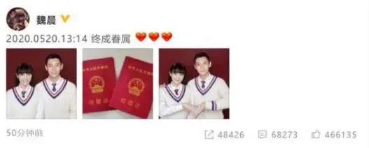 2020.05.20.13:14终成眷属。魏晨今天在微博上说了,以妻子的结婚照与结婚证。看到这一消息的网友们肯定都惊呆了,只见照片中的二人穿了情侣衫,白色毛衣情侣装在红色的背景墙衬映的特别的鲜亮,两个人双手比出爱心的形状,看起来是十分的恩爱跟甜蜜。