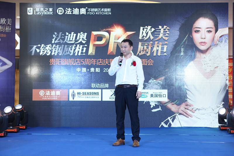 法迪奥营销总经理姜光明先生亲临现场致贺。姜总说,经得起时间检验的感情才是真感情,经得起岁月「挑剔」的品质才是好品质。法迪奥进入贵阳五年,就是真心真情真品质的五年。法迪奥很自豪,在贵阳人民经济和幸福指数增长最快的这五年,一直陪伴在身边。在未来五年,法迪奥总部将继续重点关注贵阳消费者,不断,升级的健康厨柜需求,不断争创更优质的产品服务,成为贵阳消费消费者心目中当之无愧的,不锈钢厨柜第一品牌。