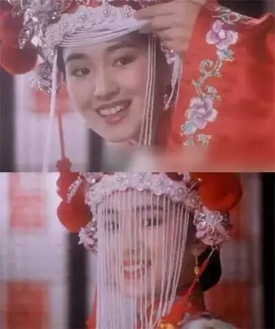 聂小倩给人的印象太深了,深到现在还有很多人走不出王祖贤那回眸一笑的表情里。其实这个新娘的造型也是经典,那嘴角和眼神,都散发出女性的另一种魅力,娇弱和柔情。