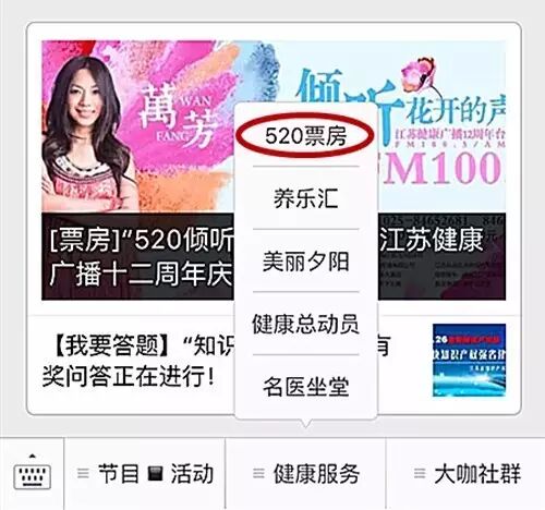 2、从今日起,江苏健康广播官微特设“520票房”专栏,点击进入即可购票。