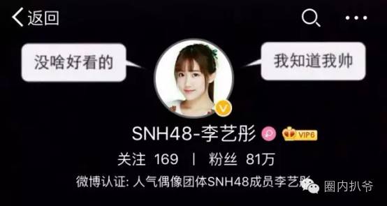 但你们是了解扒爷我的,从来不爱走寻常路,黍偏偏喜欢SNH48里面的微博第一女段子手李艺彤,比起唱歌跳舞她微博上的段子更加的惹人注目,这个世界像扒爷这样浑身都是幽默细菌的人真的不多了,扒爷理应支持。